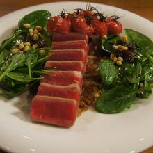 Италия: салат с мятой и тунцом, паппарделле с цукини, хлеб Мафалда
