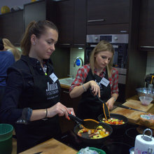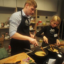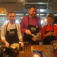 Фьюжн: салат с осьминогом, паста с лососем, фисташковое тирамису
