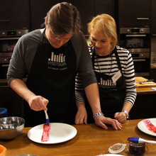 Фьюжн: тар-тар из лосося, каре ягненка, блондинка с клюквой