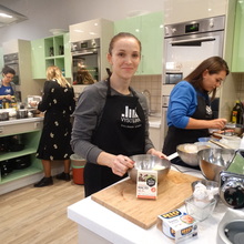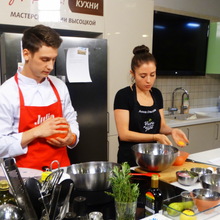 Стейк Портерхаус с ореховым соусом, Салат Панцанелла, Черемуховый кекс с пивом и грецким орехом