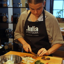 Фьюжн: крем-суп из спаржи, фрикасе из индейки, штрудель с клюквой