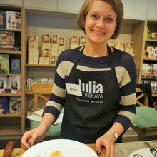Фьюжн: крем-суп из спаржи, фрикасе из индейки, штрудель с клюквой