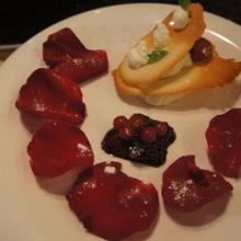 Романтический ужин: рисовый салат с цикорием, оливками и апельсинами, утиная грудка с яблочным соусом, мильфей с фисташками и грушей