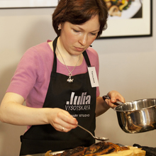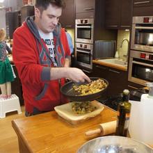 Италия: салат с пармской ветчиной, черносливом и вялеными томатами, Паста суфле из индейки с соусом из белых грибов, Клубничный смузи.