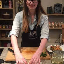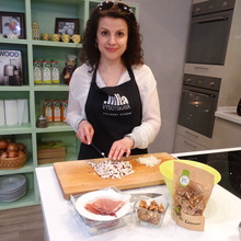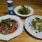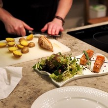 Салат с лососем, индейка под нежным соусом, пирог с вишней и яблоками