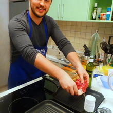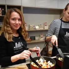 Фьюжн: крем-суп из спаржи, фрикасе из индейки, штрудель с клюквой