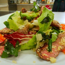 Фьюжн: салат с осьминогом, паста с лососем, фисташковое тирамису