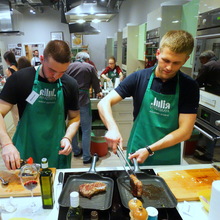 Настоящий стейк и секреты его прожарки и вафли из батата с соусом демиглас.
