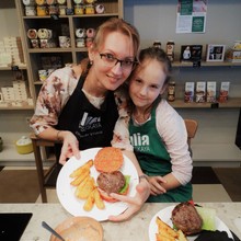 Один билет на всю семью: Сочные бургеры с разноцветными булочками, Картофель по-деревенски, Клубничный мохито.