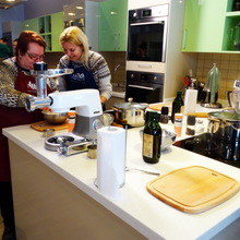 Итальянский ужин: сырный суп, пицца с семгой и каперсами, сорбет малина-розмарин.