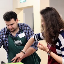 Фьюжн: тар-тар из говядины, орзо с печеным перцем, кантуччини