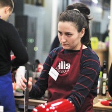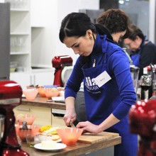 Фьюжн. Каре ягненка, салат с голубым сыром, клафути с вишней
