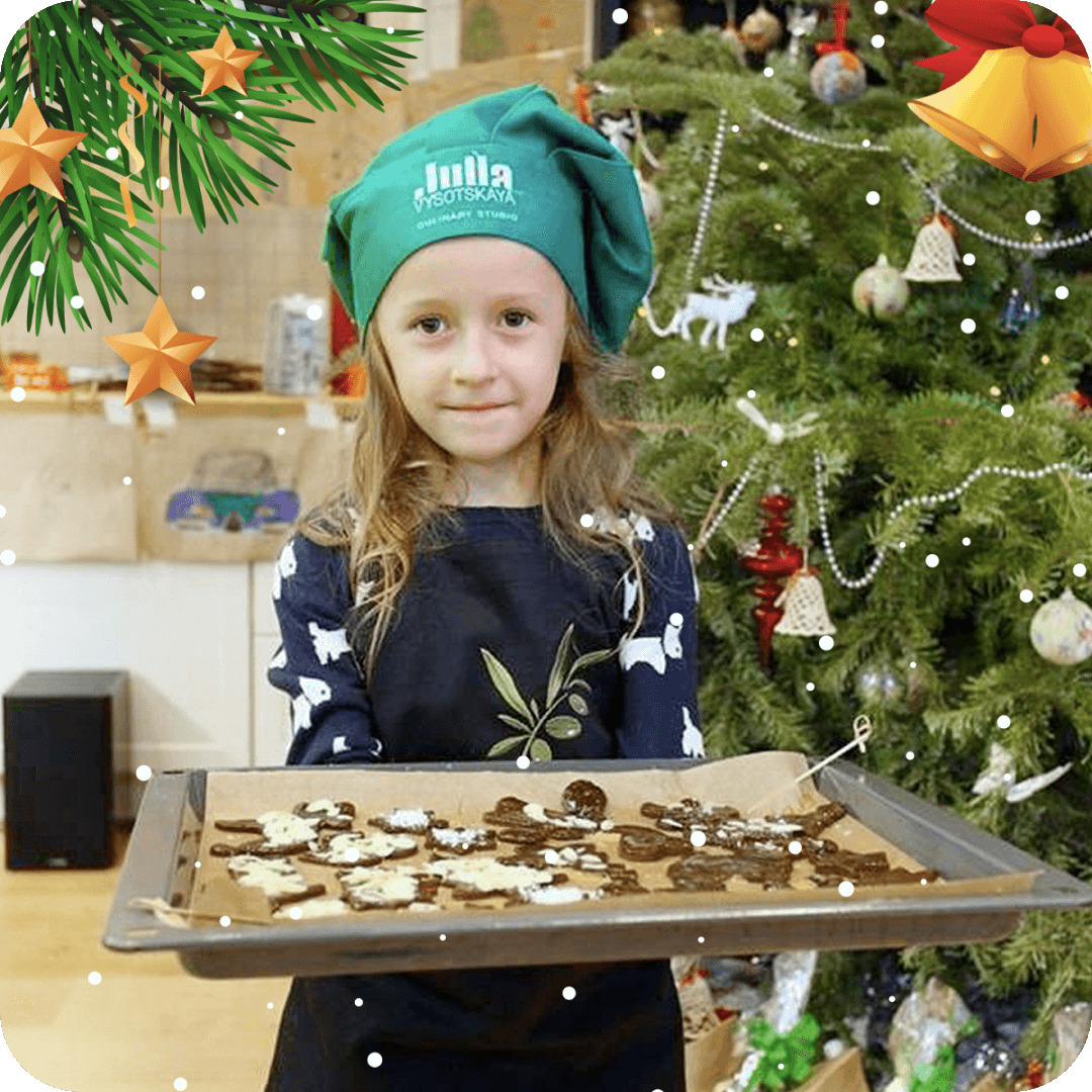 Когда волшебная книга вернётся к Деду Морозу, начнётся кулинарная магия. Настоящий Шеф-повар проведёт мастер-класс: под его руководством ребята сами приготовят и попробуют новогоднее блюдо, которое исполняет желания! Сказочный рецепт зависит от даты праздника: в меню нежный меренговый рулет, рождественское шоколадное полено, торт «Крокембуш» или мандариново-клюквенный тарт. ✨